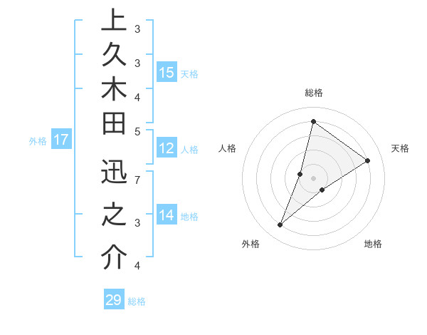 上久木田 迅之介さんを姓名の画数から五運を鑑定