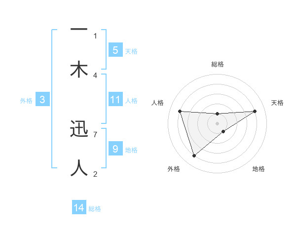 一木 迅人さんの天格は5画の4点!