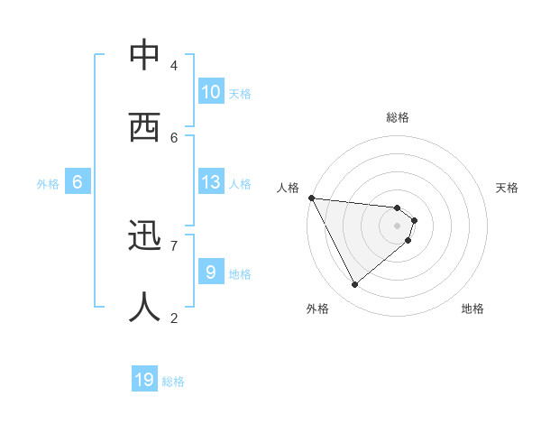 中西 迅人さんの総格は19画の1点!