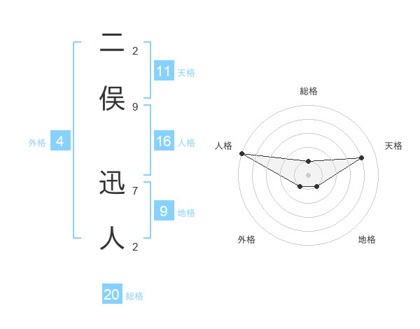 二俣 迅人さんの総格は20画の1点!