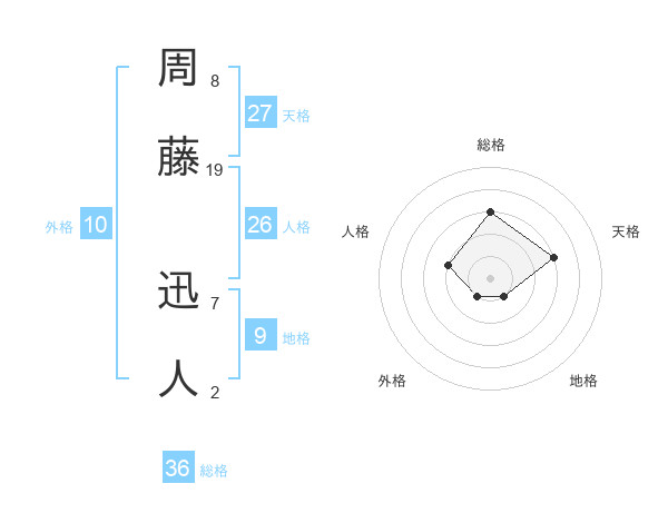 周藤 迅人さんを姓名の画数から五運を鑑定
