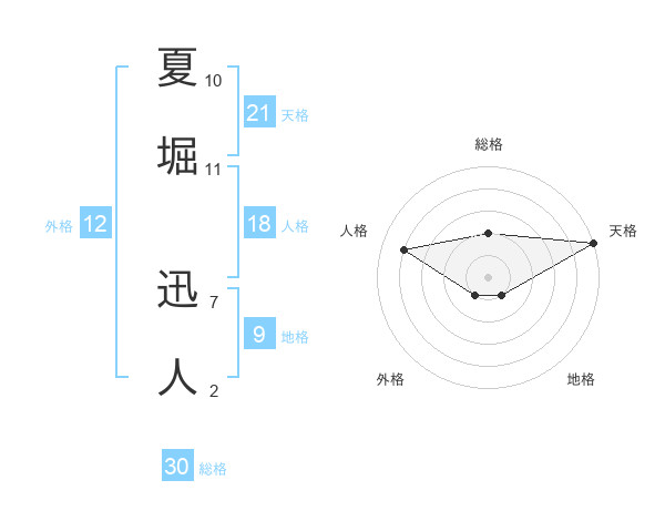 夏堀 迅人さんの総格は30画の2点!