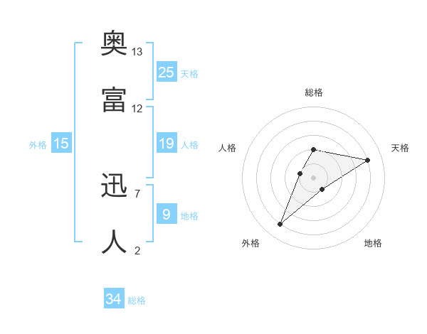 奥富 迅人さんの総格は34画の2点!