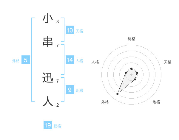 小串 迅人さんを姓名の画数から五運を鑑定
