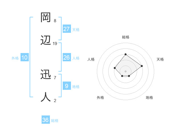 岡辺 迅人さんの総格は36画の3点!
