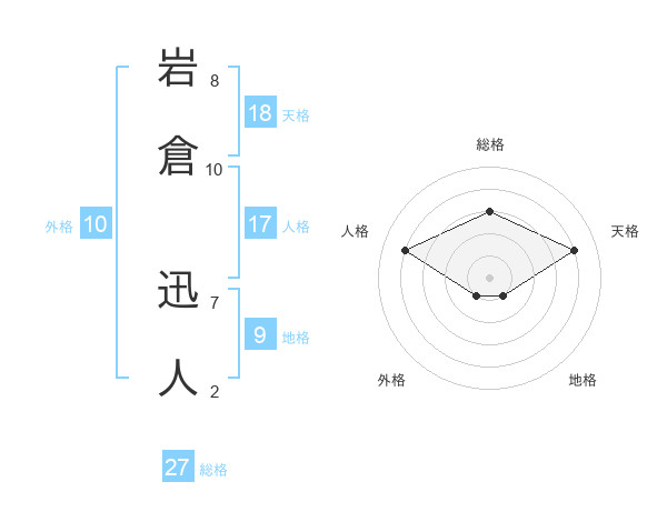 岩倉 迅人さんの総格は27画の3点!