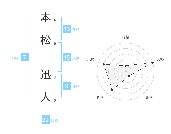 本松 迅人さんの総格は22画の1点!