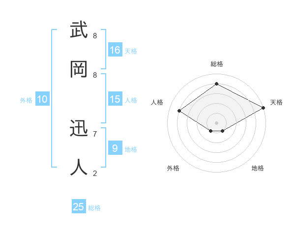 武岡 迅人さんの総格は25画の4点!