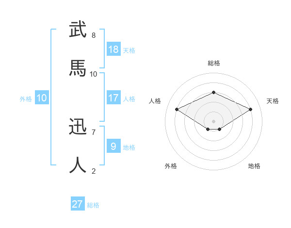 武馬 迅人さんを姓名の画数から五運を鑑定