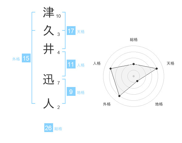 津久井 迅人さんを姓名の画数から五運を鑑定