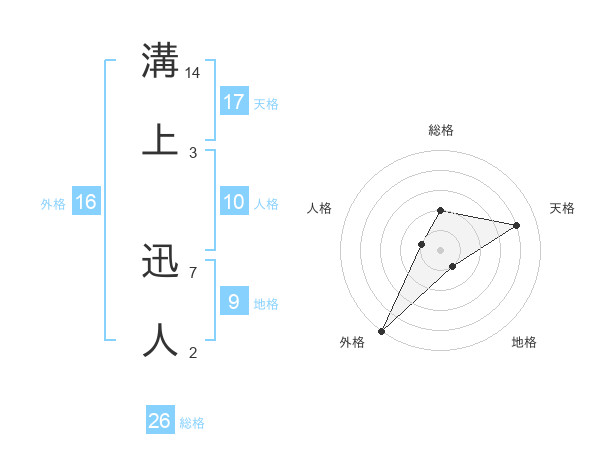 溝上 迅人さんの天格は17画の4点!