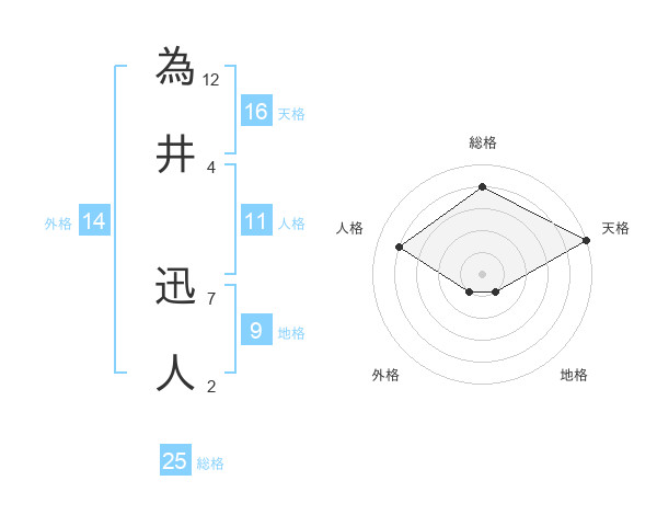為井 迅人さんの総格は25画の4点!