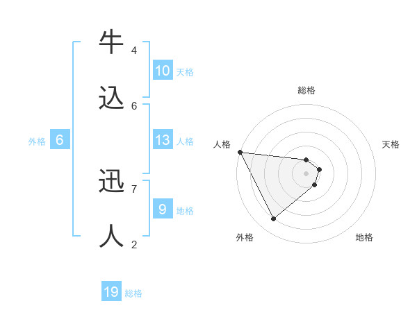 牛込 迅人さんの総格は19画の1点!