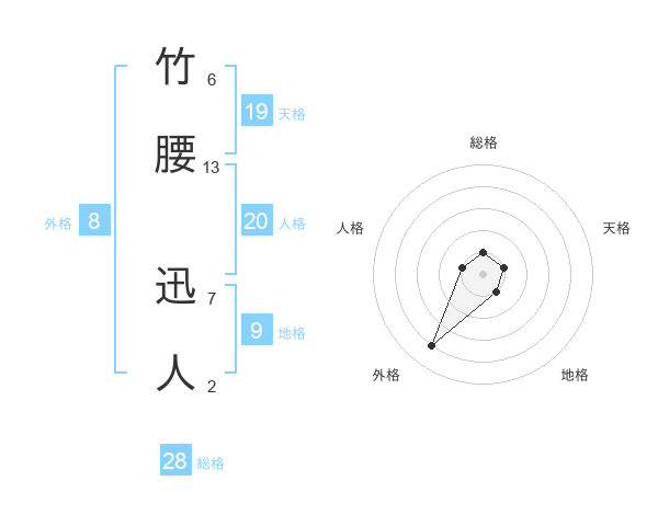 竹腰 迅人さんを姓名の画数から五運を鑑定