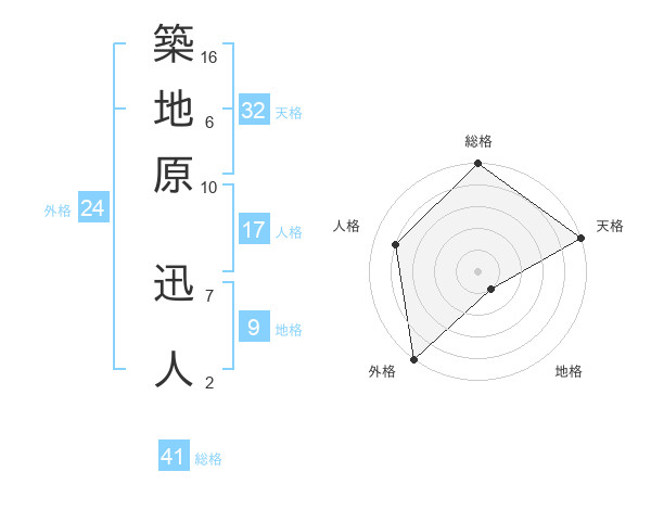 築地原 迅人さんを姓名の画数から五運を鑑定
