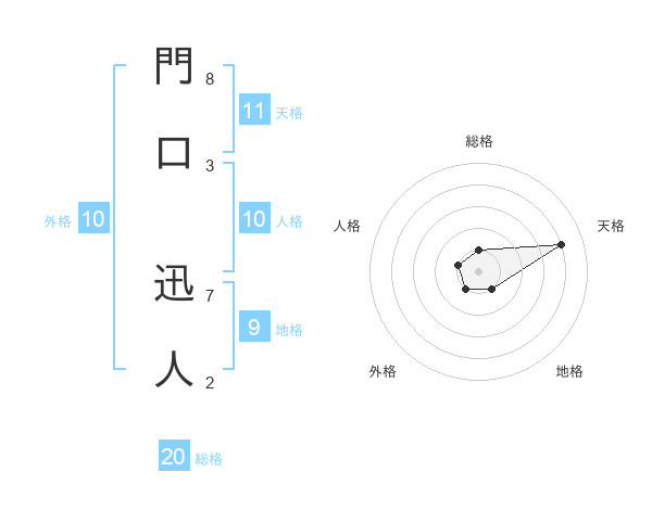 門口 迅人さんの天格は11画の4点!