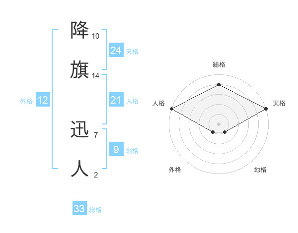 降旗 迅人さんの総格は33画の4点!