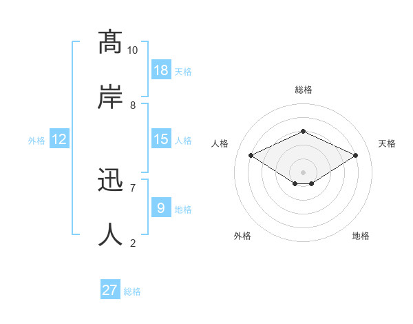 髙岸 迅人さんの総格は27画の3点!