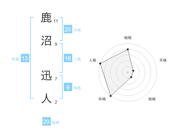 鹿沼 迅人さんを姓名の画数から五運を鑑定