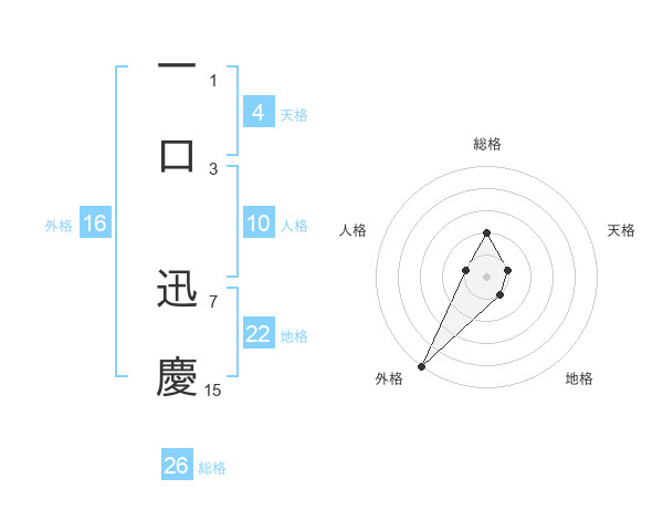 一口 迅慶さんを姓名の画数から五運を鑑定