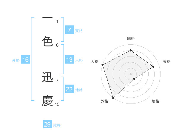 一色 迅慶さんの総格は29画の4点!