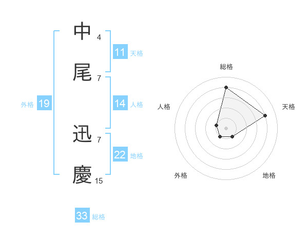 中尾 迅慶さんの総格は33画の4点!