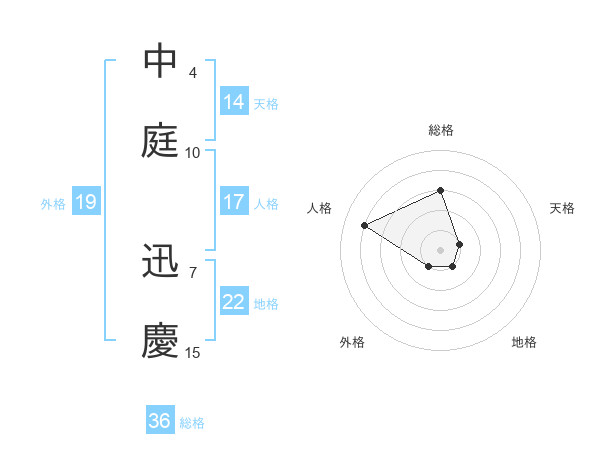 中庭 迅慶さんを姓名の画数から五運を鑑定