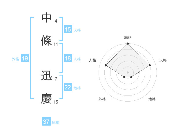 中條 迅慶さんの総格は37画の5点!