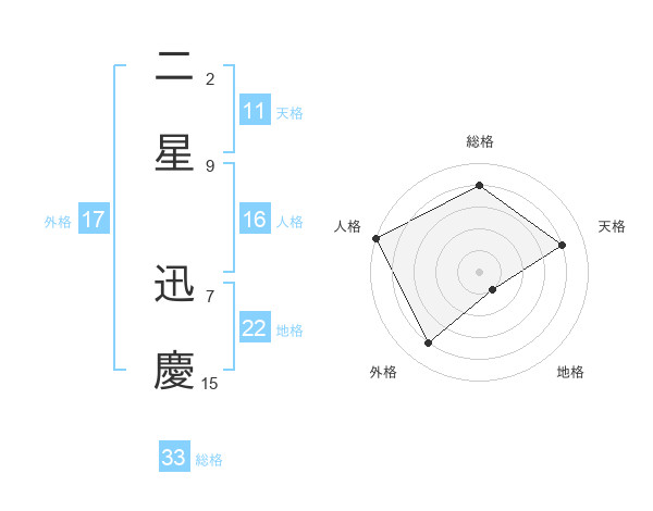二星 迅慶さんを姓名の画数から五運を鑑定