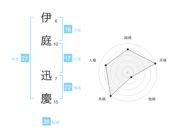 伊庭 迅慶さんを姓名の画数から五運を鑑定