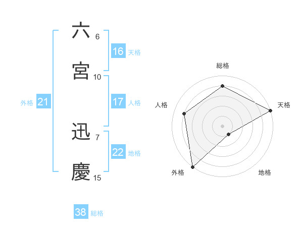 六宮 迅慶さんを姓名の画数から五運を鑑定