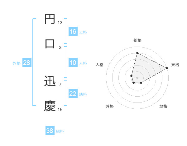 円口 迅慶さんを姓名の画数から五運を鑑定