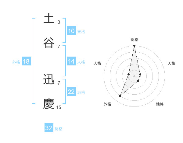土谷 迅慶さんを姓名の画数から五運を鑑定