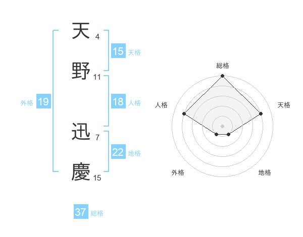 天野 迅慶さんの総格は37画の5点!