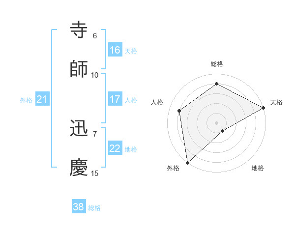 寺師 迅慶さんの総格は38画の4点!