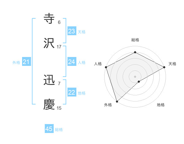 寺沢 迅慶さんの外格は21画の5点!