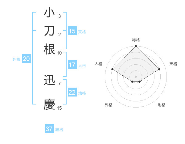 小刀根 迅慶さんを姓名の画数から五運を鑑定