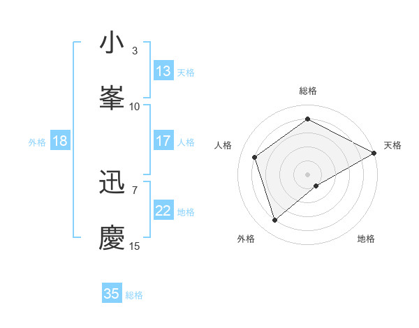 小峯 迅慶さんを姓名の画数から五運を鑑定