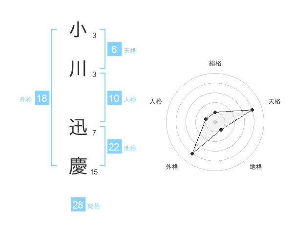 小川 迅慶さんを姓名の画数から五運を鑑定