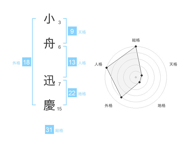 小舟 迅慶さんを姓名の画数から五運を鑑定