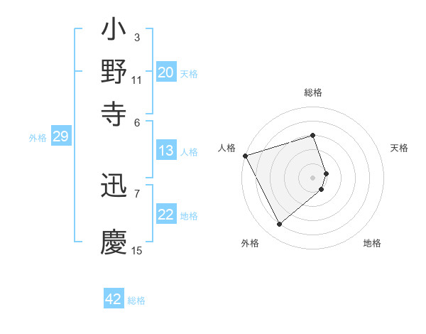 小野寺 迅慶さんを姓名の画数から五運を鑑定