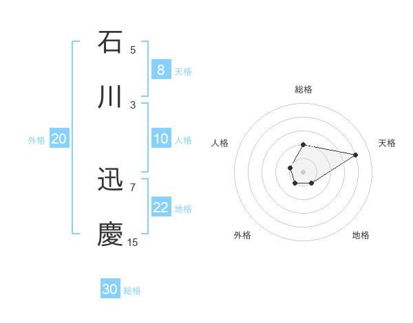 石川 迅慶さんの総格は30画の2点