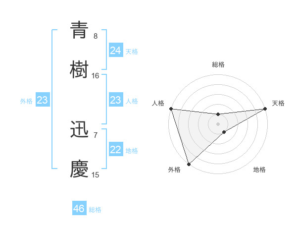 青樹 迅慶さんを姓名の画数から五運を鑑定