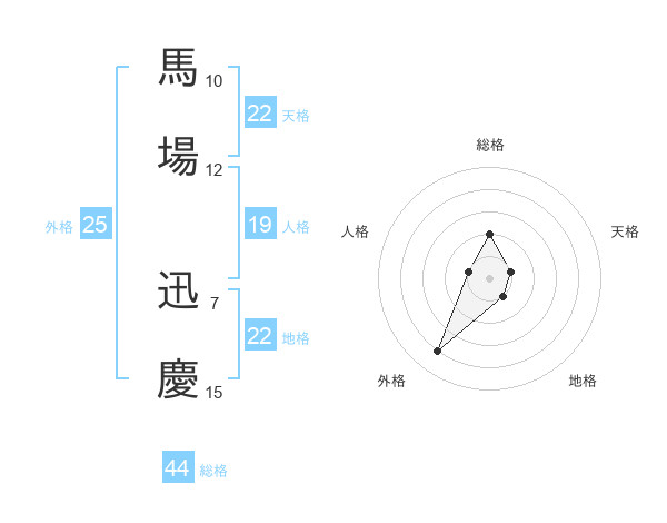 馬場 迅慶さんの地格は22画の1点!