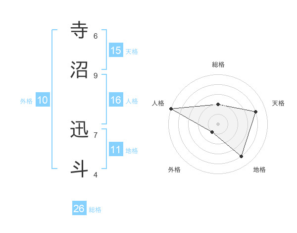 寺沼 迅斗さんの総格は26画の2点!