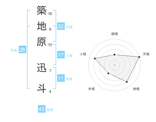 築地原 迅斗さんを姓名の画数から五運を鑑定