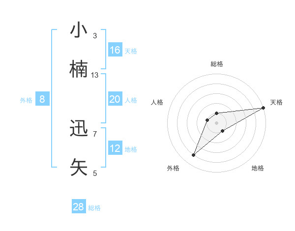 小楠 迅矢さんを姓名の画数から五運を鑑定