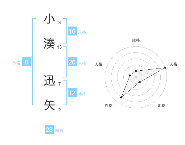 小湊 迅矢さんの総格は28画の1点!
