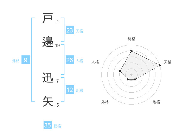 戸邉 迅矢さんの総格は35画の4点!