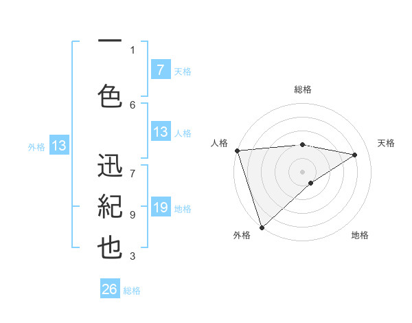 一色 迅紀也さんを姓名の画数から五運を鑑定